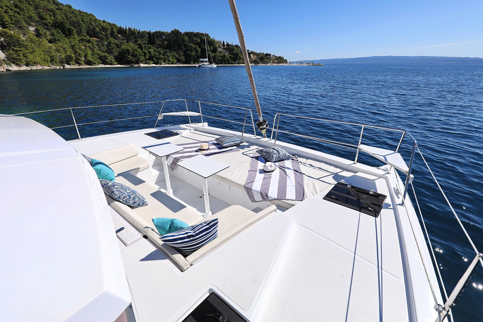 includes: Wi-Fi, dinghy, final cleaning of the boat, 2x gas bottles, 1 towel/person/week, 1 set of bed linen/person/week, garbage bags, sponge, kitchen towels, dish soap, toilet paper, outboard engine 2,5 HP, VAT.