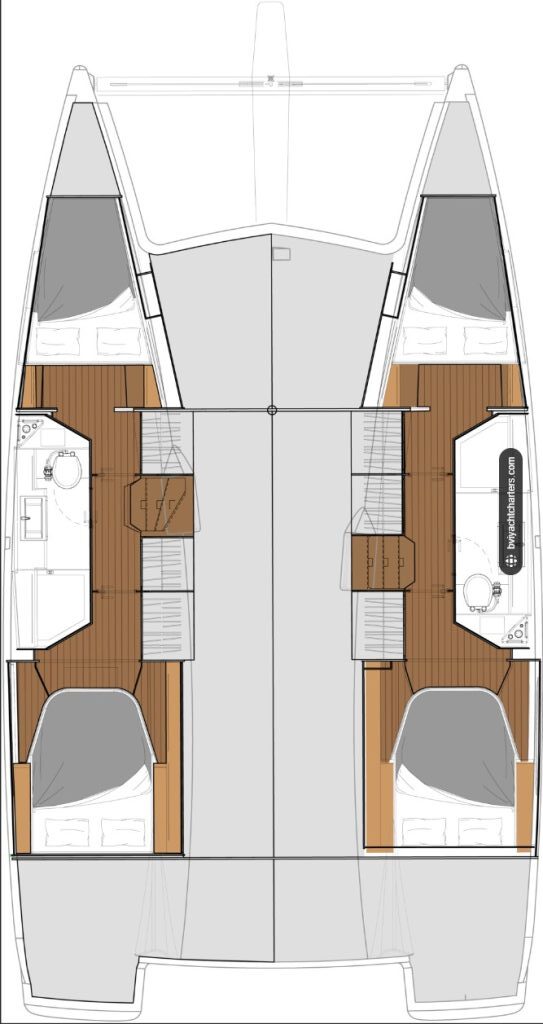Infinite Blue is equipped with 4 cabins, 2 heads, and a salon table converting to a double berth, providing plenty of space for up to 8 people. She is outfitted for style and convenience and her size provides maximum comfort for charter guests. With fridge and freezer drawers inside and a nice open galley, she provides ample storage space. You will not miss having an oven with a great 3-burner stove and an outdoor gas BBQ. Enjoy some time in the large cockpit or the spacious lounge for some relaxation and fun in the sun. Like all of our luxury yachts, she is fully equipped with numerous amenities, including a water maker, air conditioning, and a generator, for your comfort.