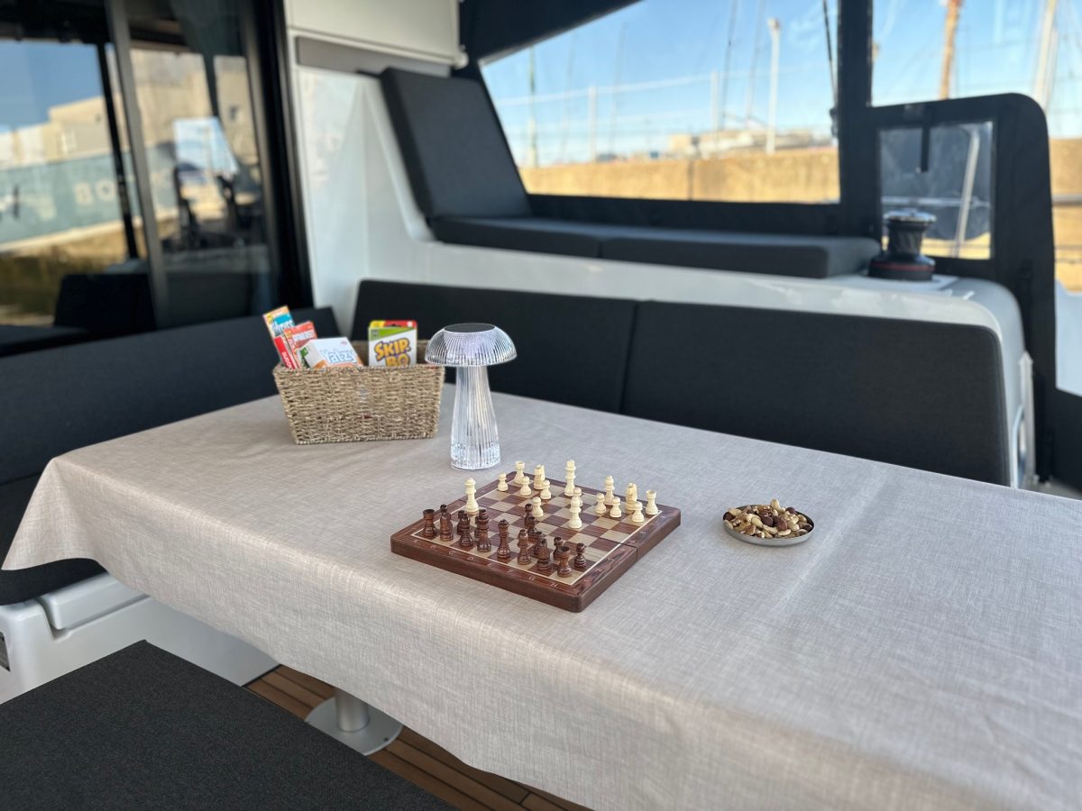 includes: final cleaning, bottle of wine, bottle of water, salt, sugar, aluminum foil, cling film, dish detergent with sponge, dishwasher tablets (if applicable), roll of rubbish bags, toilet paper (2 rolls per toilet), soap, table cloth, 5 kitchen towels, 2 rolls of paper towels, matches, hand, bath and beach towels, shower gel and hair shampoo (2 sets per cabin), hair dryer, Nespresso machine with 30 coffee pods, dinghy and outboard engine with 5L of fuel (not included with XPower, Antares 11 and Nimbus motor boats). All catamarans are provided with at least one SUP board.