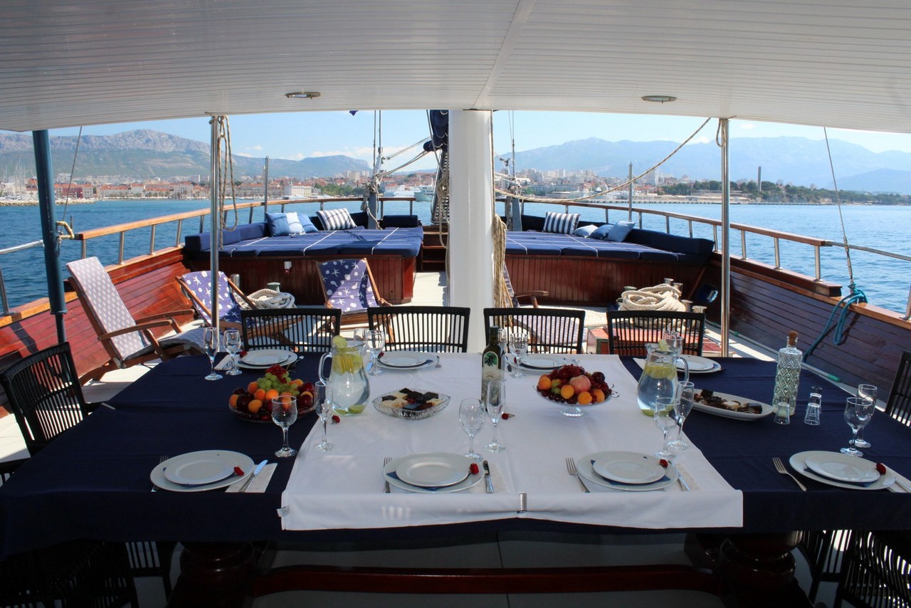 Step aboard Barba, a majestic 43-meter gulet that epitomizes refined cruising. With six spacious cabins accommodating up to 12 guests, Barba delivers generous comfort and style. Her expansive decks, multiple sun lounges, and elegant interior spaces invite you to relax, socialize, or dine in serenity. Whether charting a course through hidden bays or coastal towns, the attentive four-member crew ensures your journey is seamless, luxurious, and unforgettable. Equipped with solar panels, modern amenities, and versatile water toys, Barba is your vessel to explore the Adriatic in unmatched elegance.